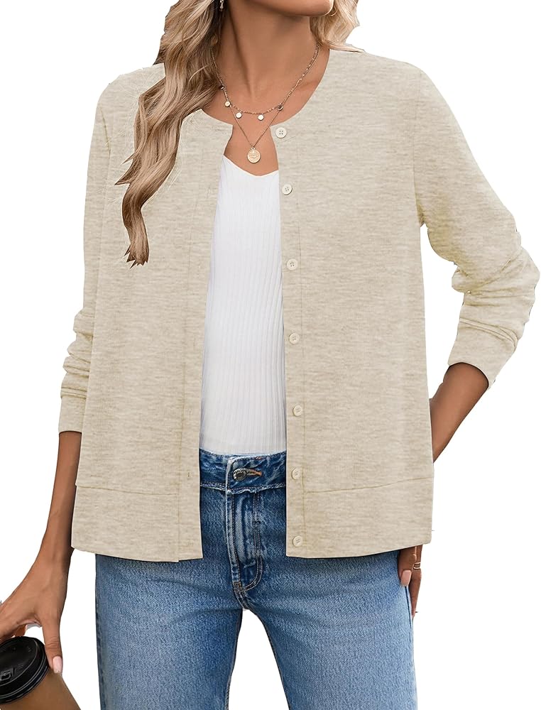 Features: Long sleeve, Crew neck, Front button closure, Lightweight, Open front, Knitted. Classic solid color, no baggy, Simple and casual design, charming, fashionable, soft and cozy