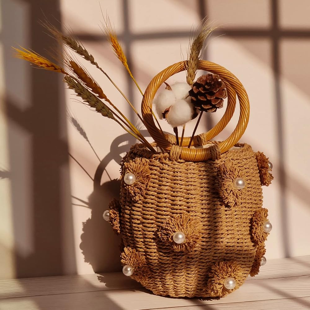 ✿【Artwork】Unique bucket shape style design straw bag, which is not only a woven tote bag, but also a decorative work of art makes you look fashion.Its dainty and unique design will let you be more attractive&charming among people.
