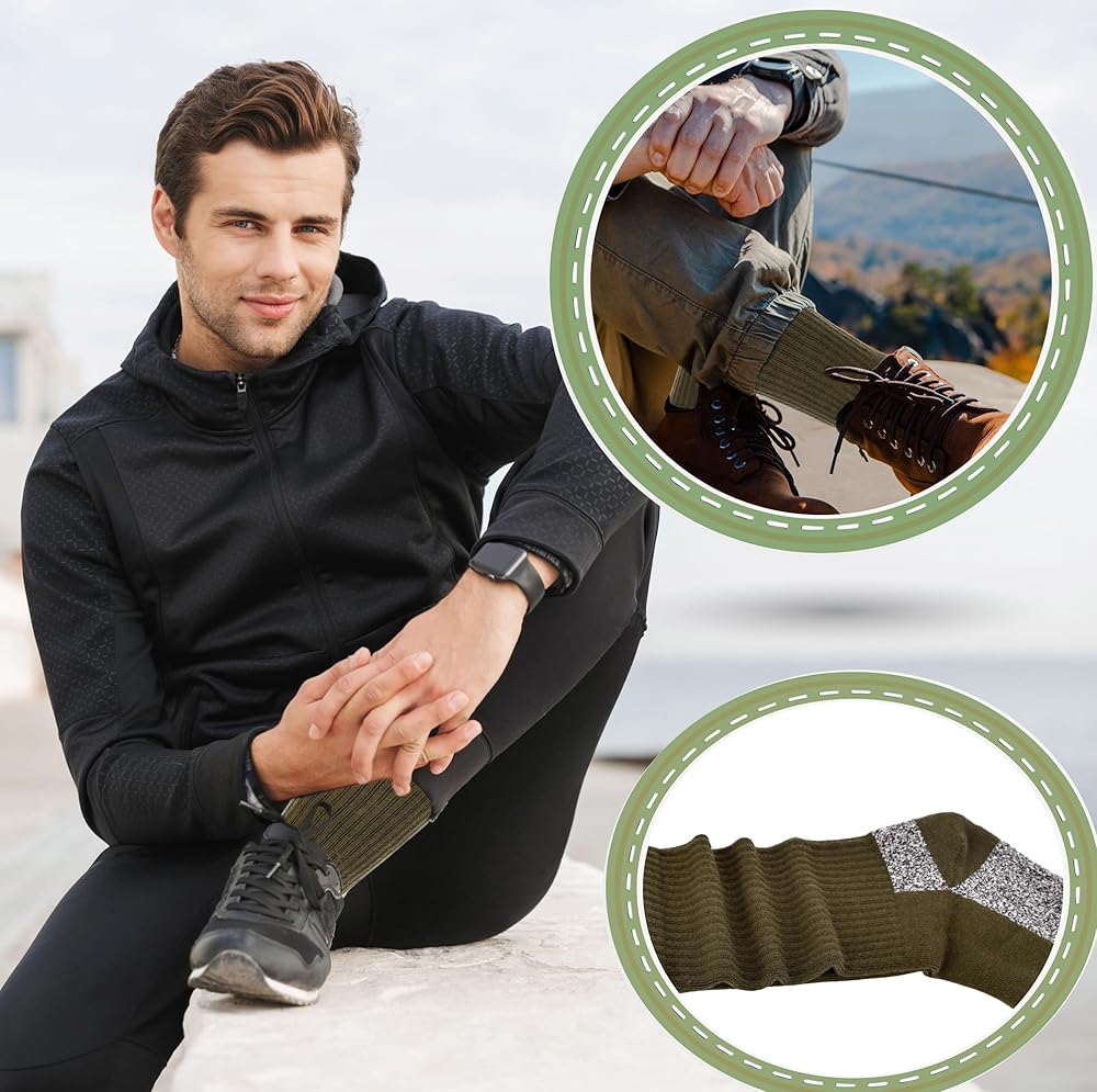 【Suitable Occasion】: our military green socks are designed for high-intensity work in the military, police and fire department. They are also suitable for outdoor sports enthusiasts, weekend hiking and mountaineering, and are also very comfortable for daily wear