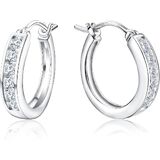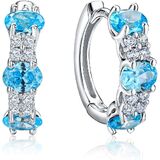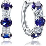 Material and Size : 925 Sterling Silver made classic hoop earrings, platinum plated to avoid oxidization, color lasting hypoallergenic, lead free and nickel free ; 13.5mm diameter, 1.2 Carat created blue sapphire stone, and 0.3 carat natural cubic zirconia stones, earrings weight 1.83 grams/pair. Suitable for sensitive ears wear.