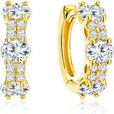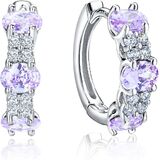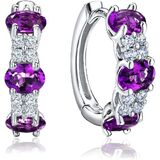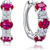 Design : These hoop huggies earrings showcase a stunning chunky hoops with created gemstones and cubic zirconia in the center, sturdy securely set 4-prong setting ensure stone won't fall off, all around brillant sparkling shiny, available in 4 colors, they provide a sleek and modern look suitable for both men and women.