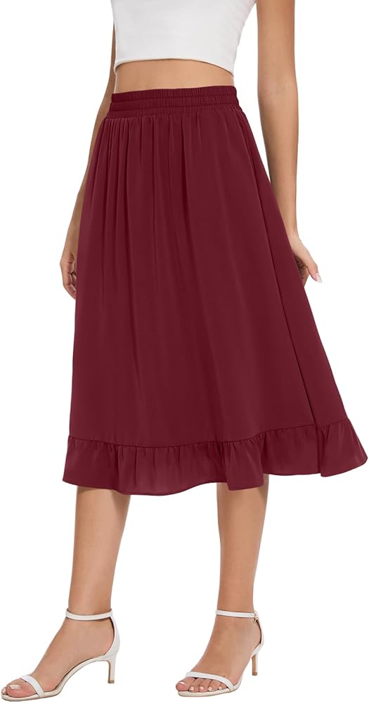 Trendy & Comfortable: This midi skirt features a stylish A-line cut with a trendy elastic high waist, offering both comfort and modern appeal, perfect for casual outings or day trips.