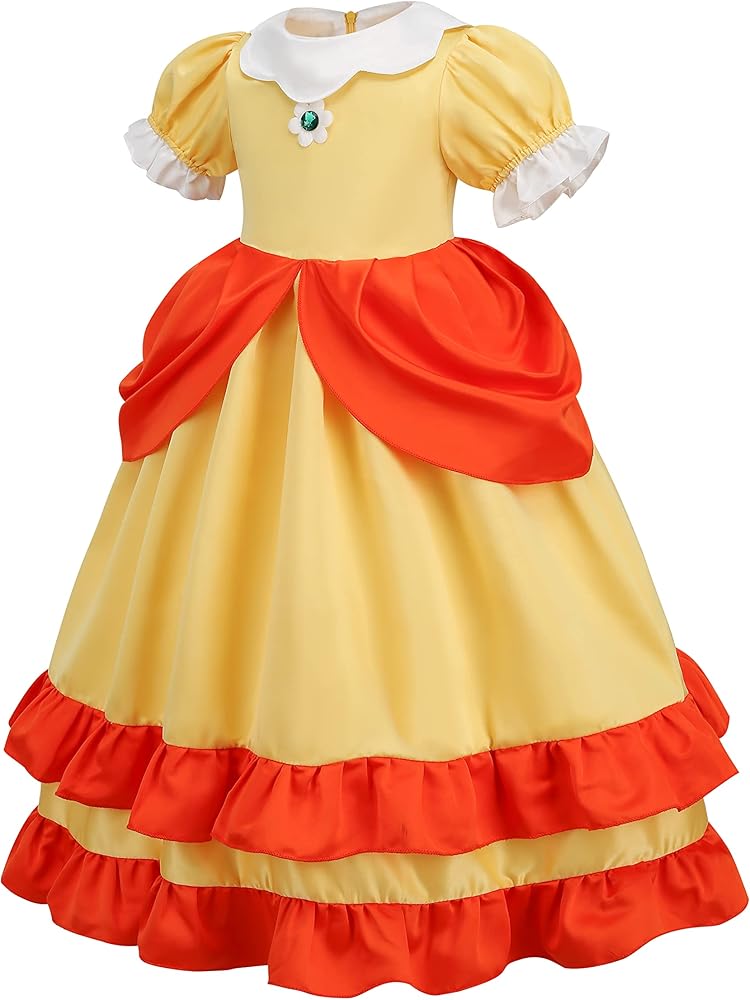 HIGH QUALITY PRINCESS DRESS: Made from high quality comfortable satin, cotton lining and polyester, with a puff sleeve design and jewel embellishment on the bodice, it is breathable and lightweight, making it very comfortable to wear.