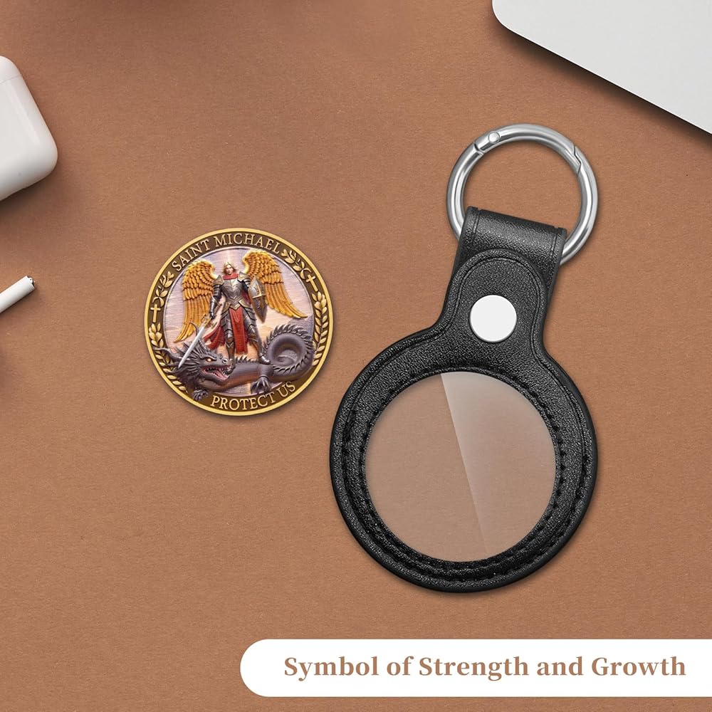 Versatile & Practical: The St. Michael Archangel Coin comes with a sleek leather coin holder that doubles as a St. Michael Keychain, allowing you to carry your faith and protection wherever you go. Designed for convenience, the holder features a secure snap-button closure, making it easy to access your Saint Michael Coin anytime. The Saint Michael Keychain also includes a press-to-open keyring, effortlessly attaching to keys, bags, or other essentials with just a click.