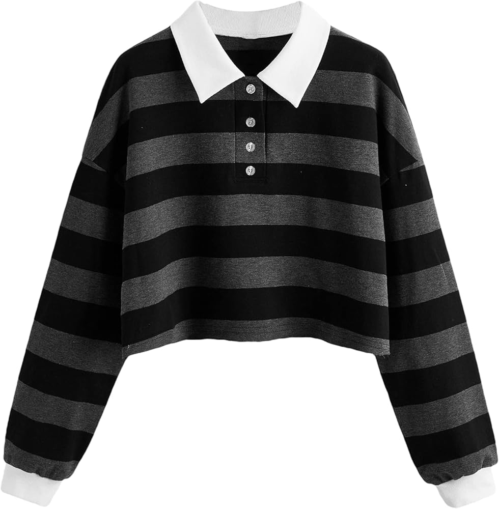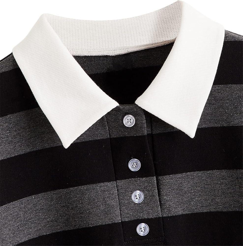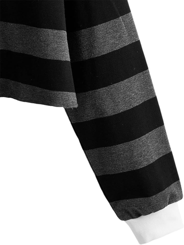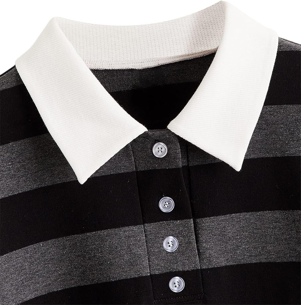 Remidoo Women's Casual Long Sleeve Collared Striped Cropped Sweatshirt