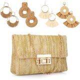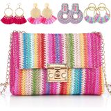 5 Pack Striped Straw Clutch Purse Crossbody Vacation Handbag Woven Rattan Dangle Earrings for Women(Colorful,Square Buckle)