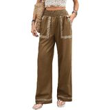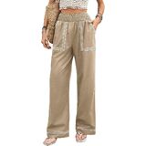 Functional Side Pockets: Stylish and functional wide leg linen pants for women with elastic shirred waist, flowing maxi length, and practical womens palazzo pants with pockets ideal for summer wide leg pants for women and flowy pants for women boho looks