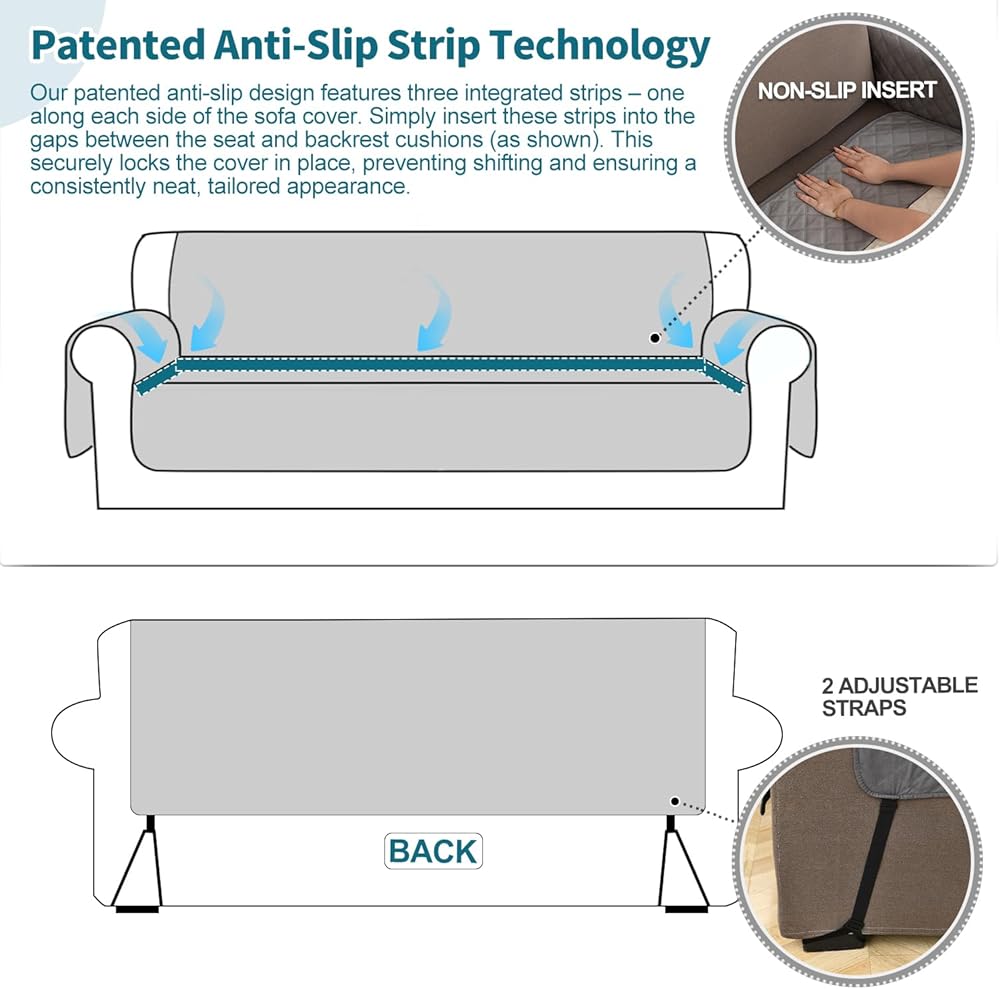 100% Non-slip Design: Our simple yet effective solution keeps the sofa slipcovers firmly in place. Drape the couch slipcover over the sofa and tuck the special anti-slip backing strip fabric securely into the seat crevices for a neat, smooth look. Then, the pet couch covers for dogs washable features removable adjustable elastic straps easily fastened at the sofa back to prevent the backrest cover from shifting or sliding off