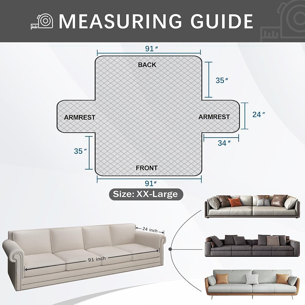 Multi-size Options: We offer couch covers for sofa and chairs of all sizes: Small chair covers armchair slipcovers (23" Seat Width), Medium loveseat covers (45"), Medium-XL love seat couch covers (54"), Large couch covers for 3 cushion couch sofa (68"), X-Large sofa covers for 3 cushion couch (78"), and XX-Large oversized couch cover (90"). Please measure your sofa seater width using the detailed guide in images