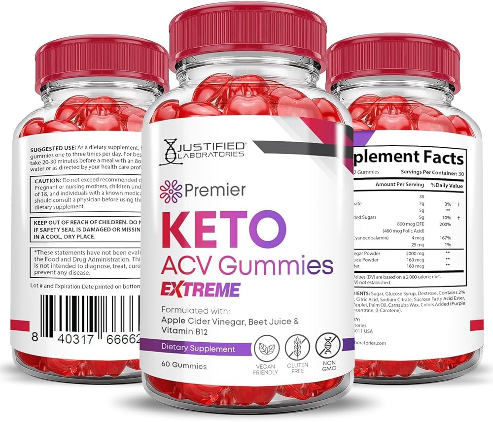 Justified Laboratories Premier Keto ACV Gummies Extreme 2000MG Premier Keto Gummies Apple Cider Vinegar Formulated with Pomegranate Beet Juice Powder B12 Vegan Non GMO 60 Gummys