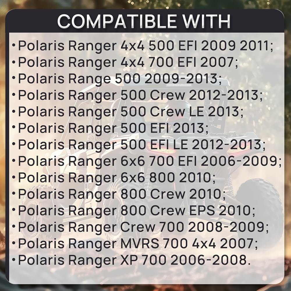 • Fitment: Compatible with Polaris Ranger 500 2009-2013; compatible with Polaris Ranger 700 2008-2009; compatible with Polaris Ranger 800 2010; compatible with Polaris Ranger Crew 500 2011-2013.