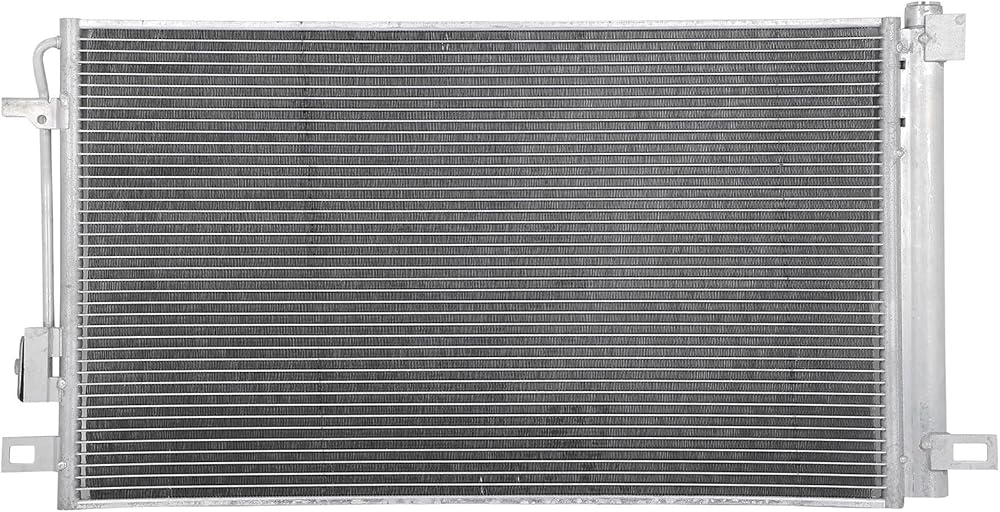 Air Conditioning System ---- Air Conditioning A/C Condenser is located under the engine hood of the vehicle and plays most of the cooling function (similar to a radiator), converting compressed refrigerant vapor into subcooled liquid, and releasing heat to the external air through these fins. The car air conditioning system receives thermal energy from the evaporator in the passenger compartment and releases it into the external air through the condenser