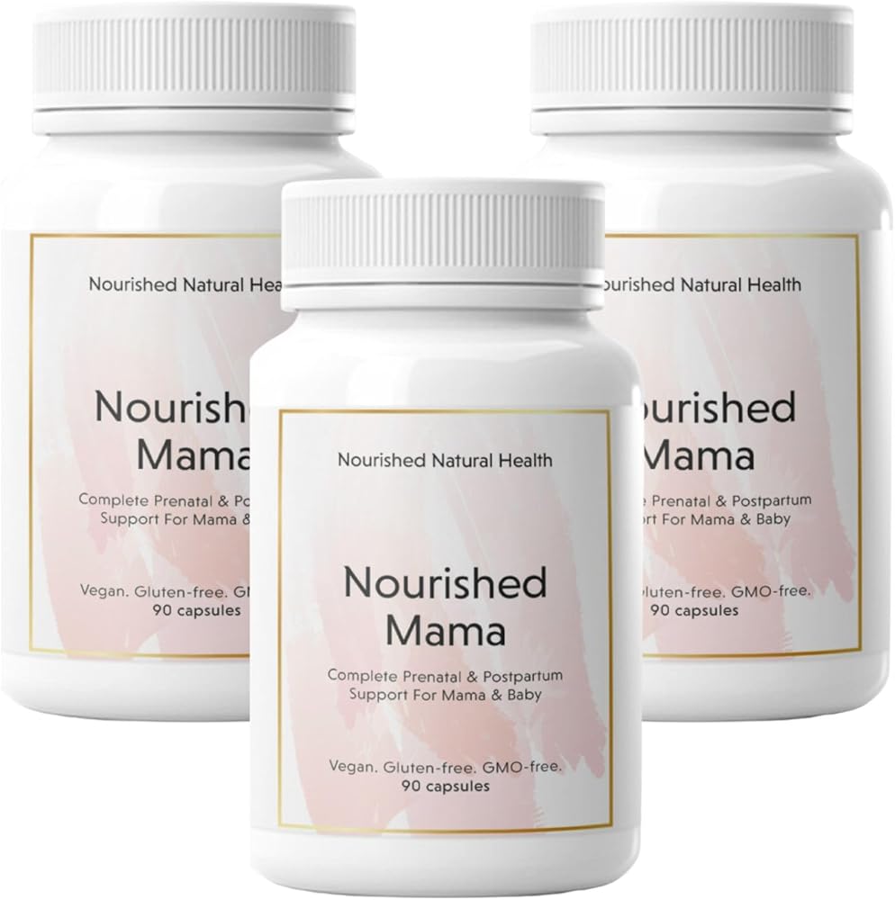 PRENATAL, IN-UTERO & POSTPARTUM SUPPORT - Nourished Mama is a meticulously formulated vegan vitamin supplement designed for all perinatal stages from preconception to postpartum. 3 capsules a day can help prepare your body for conception and pregnancy, replenishing your nutrient stores and enhancing egg quality and ovulation. It supports baby's growth during pregnancy, nourishes mama during recovery, and even supports breastfeeding and lactation for those who choose to.