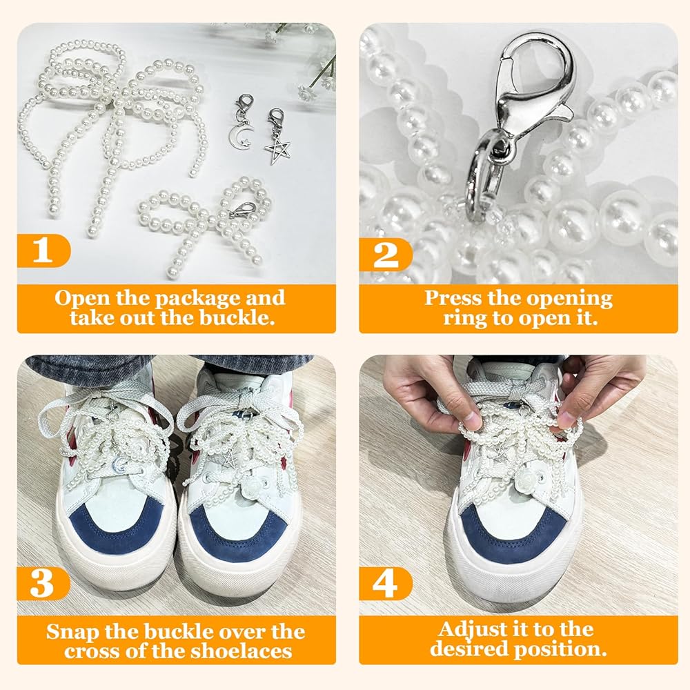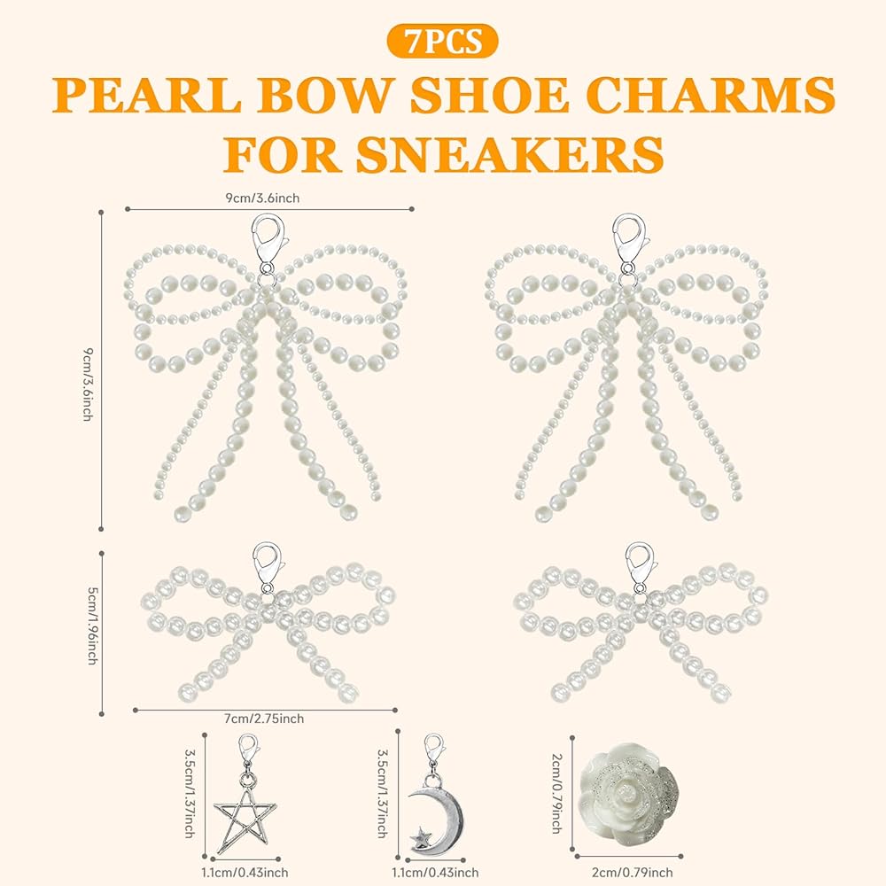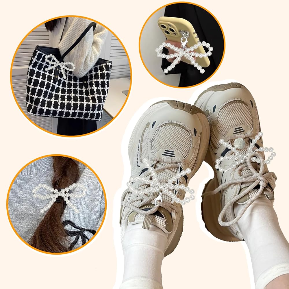 [High-Quality ABS Plastic]The pearl bow shoe charms are made of artificial pearls with a smooth, shiny surface. Each bead chain is handmade, enhancing your shoes with a fashionable flair! Minor deformations or inconsistencies in elasticity are normal and can be adjusted manually without affecting the charm's look or function