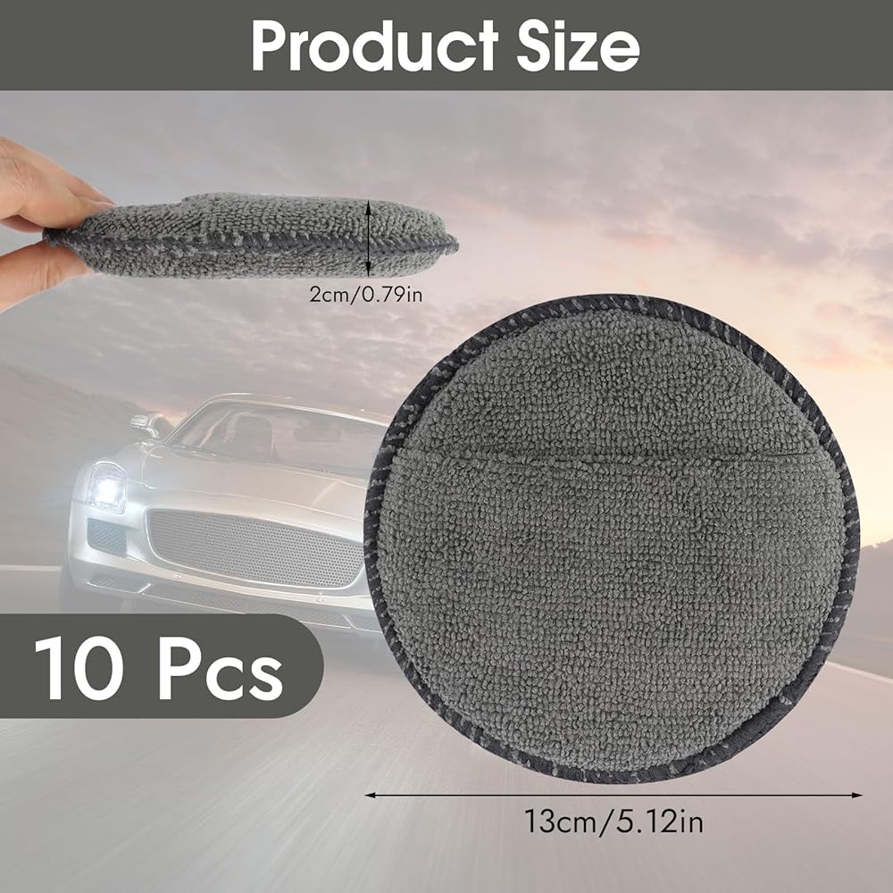10 Pack Applicator Pads: Includes 10 premium microfiber wax applicator pads, ensuring you always have a fresh pad for waxing, polishing or cleaning, vacuum sealed for storage, pads may take time to regain the original size