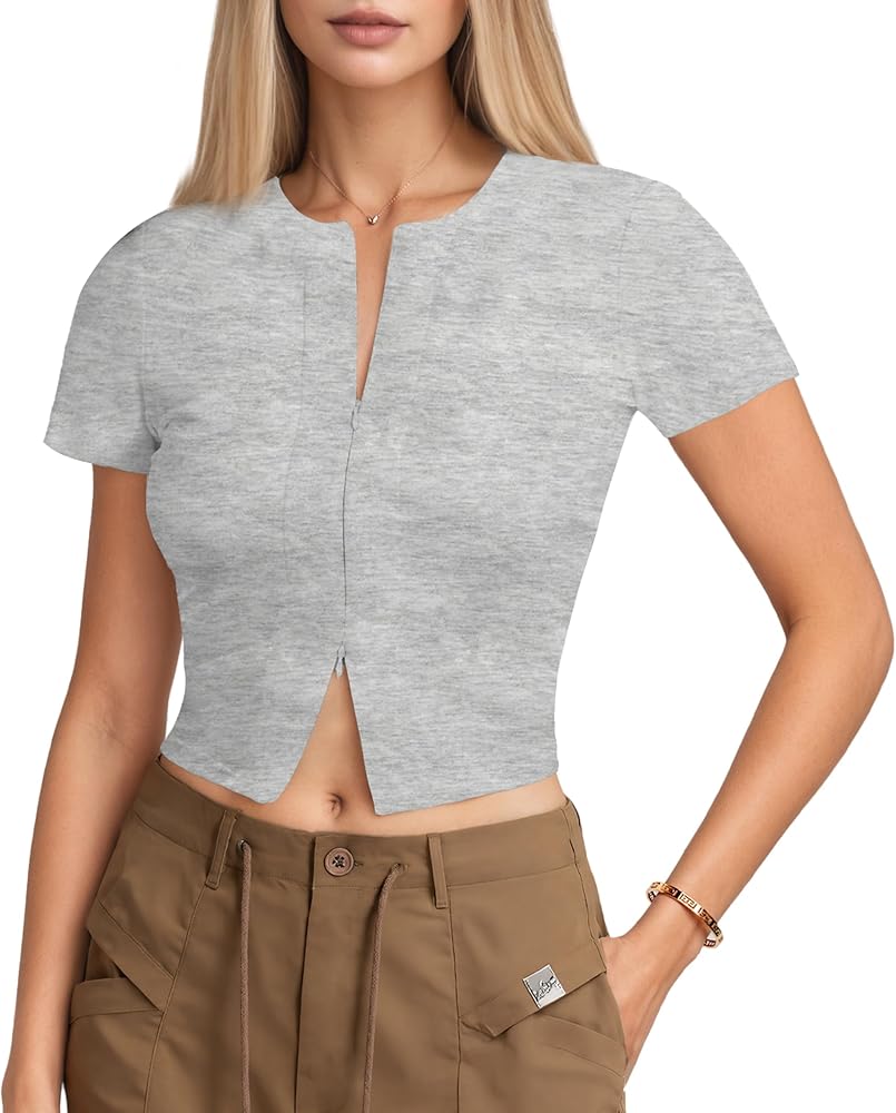 【2025 New Fit: One T-Shirt, Endless Styles】: Pullover T-Shirt with hidden dual zippers—they don't fully unzip, but adjust freely to show off different vibes! Zip top for a laid-back V-neck, zip bottom to flaunt that crop curve, or fully zip for a classic crewneck. Easy style shifts, no limits.