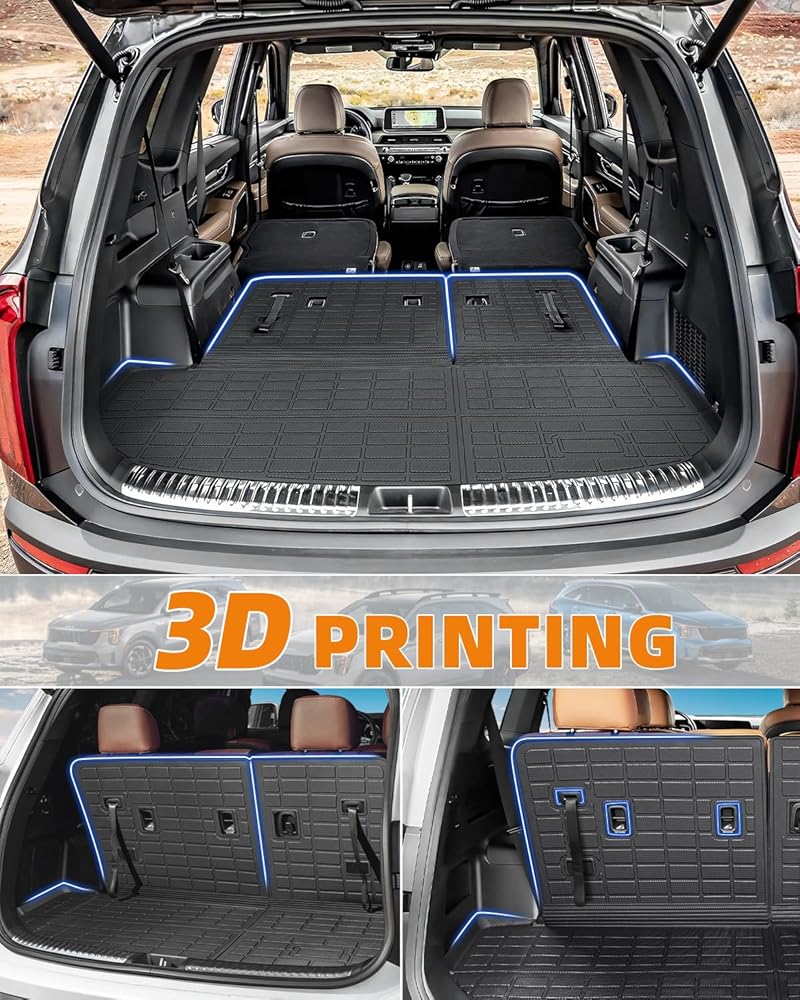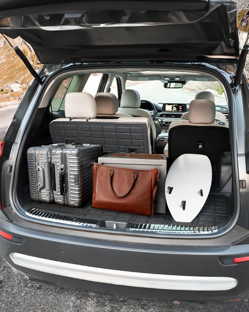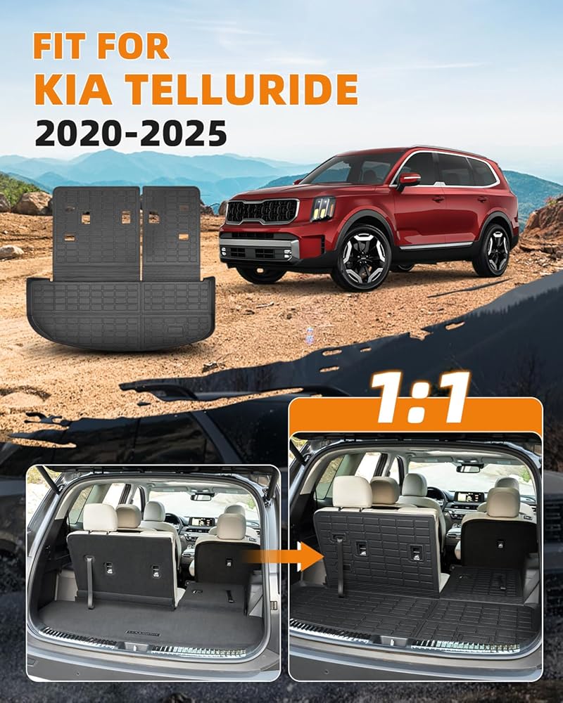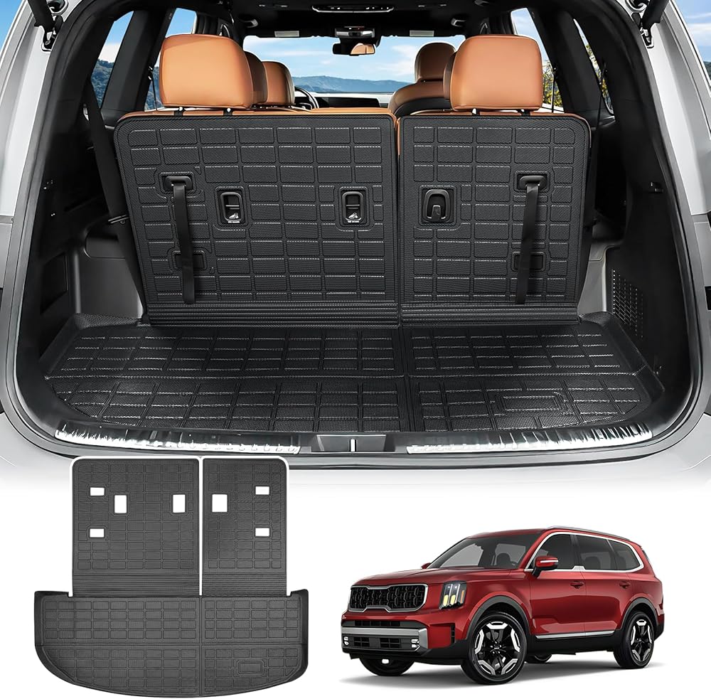 Fitment Kia Telluride Cargo Liner :Trunk mat with backrest mat compatible with 2020 2021 2022 2023 2024 2025 kia telluride. Confirm whether it is applicable before purchasing.