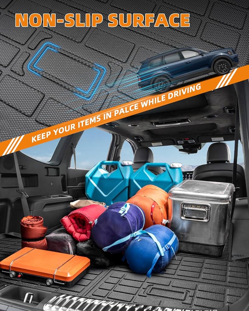 Non-slip surface: The non-slip texture of the luggage trunk mat is designed to prevent items from slipping during transportation, making it more stable.
