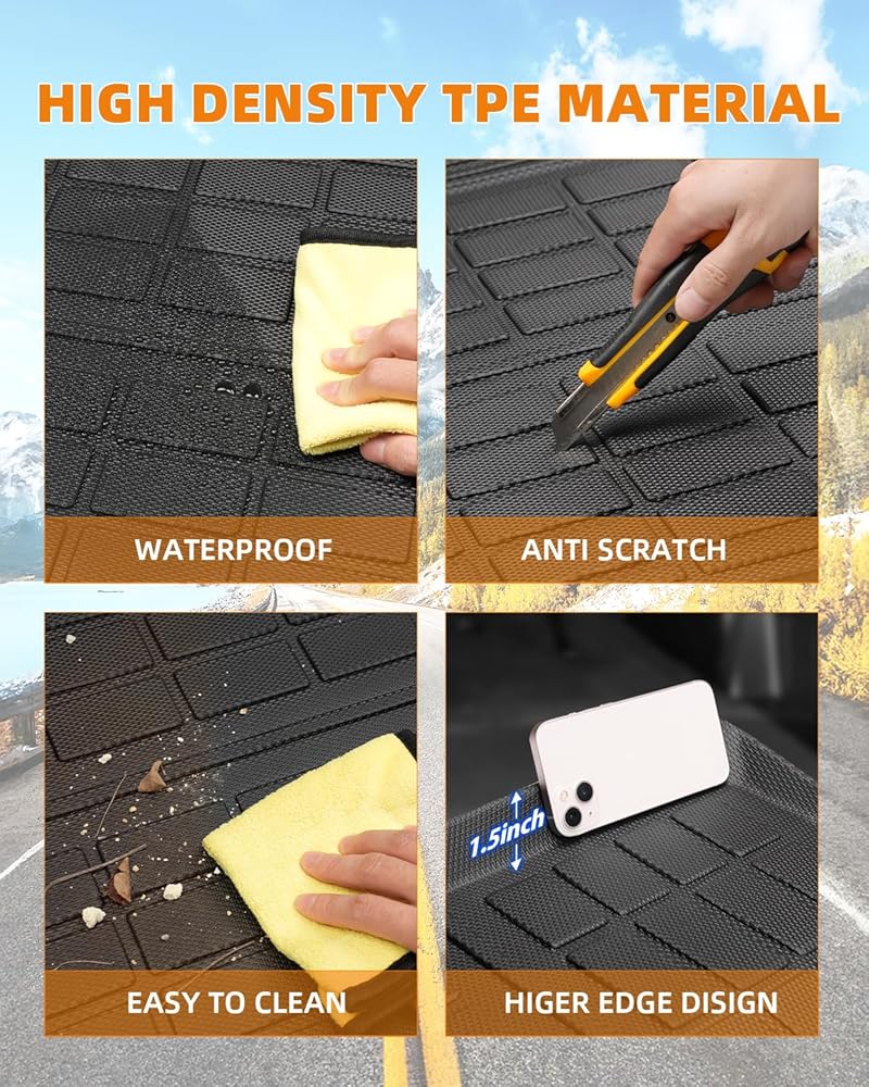 Material: Back seat covers and cargo liner are made of high-quality TPE material,non-toxic,flexible.Designed to withstand daily wear and tear, ensuring long-lasting protection for your vehicle's interior.