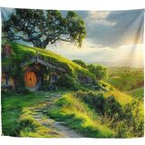 Xolytar Hobbit Style House Tapestry for Bedroom – Green Hill Garden Landscape Backdrop for Ring Lord Fans Party, Fantasy Birthday Decoration, Classroom Reading Corner Background (60x50)
