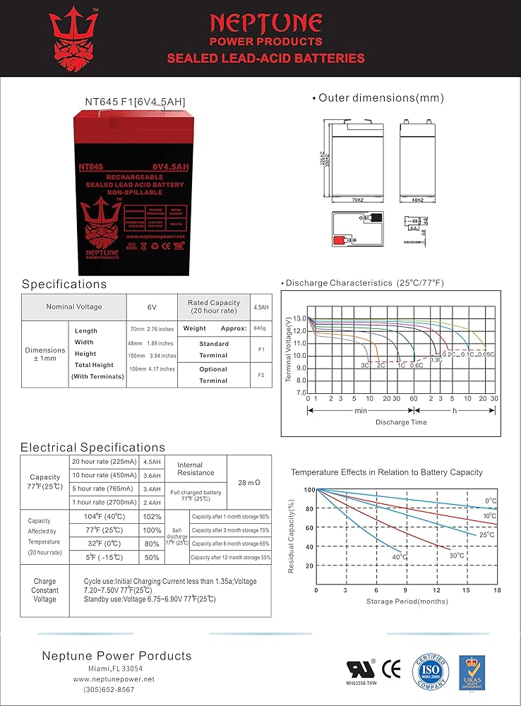 6V 4.5Ah Battery Specifications: