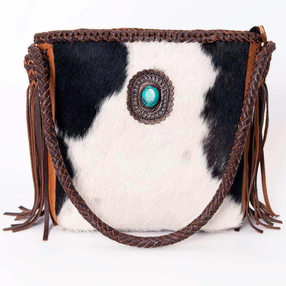 PREMIUM QUALITY MATERIAL: This is a handmade American Darling women Tote bag made with soft and supple handpicked Hair on Genuine Cowhide leather. High-quality Soft and supple Eco friendly vegetable-tanned full grain genuine leather is also used to make this handbag that ages beautifully as it wears. These Tote bags are complemented with a beautiful leather fringe giving it a western look. Available in Size: 12in (H) X 11in (W) X 4in (D)