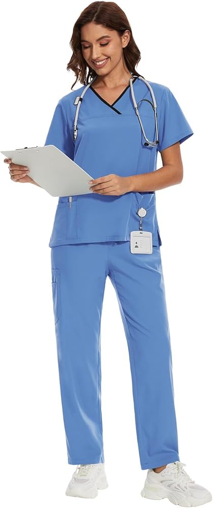 - COMFORTABLE FIT: With breathable and quick-drying fabric, this scrub set promises to keep the wearer comfortable all day long.