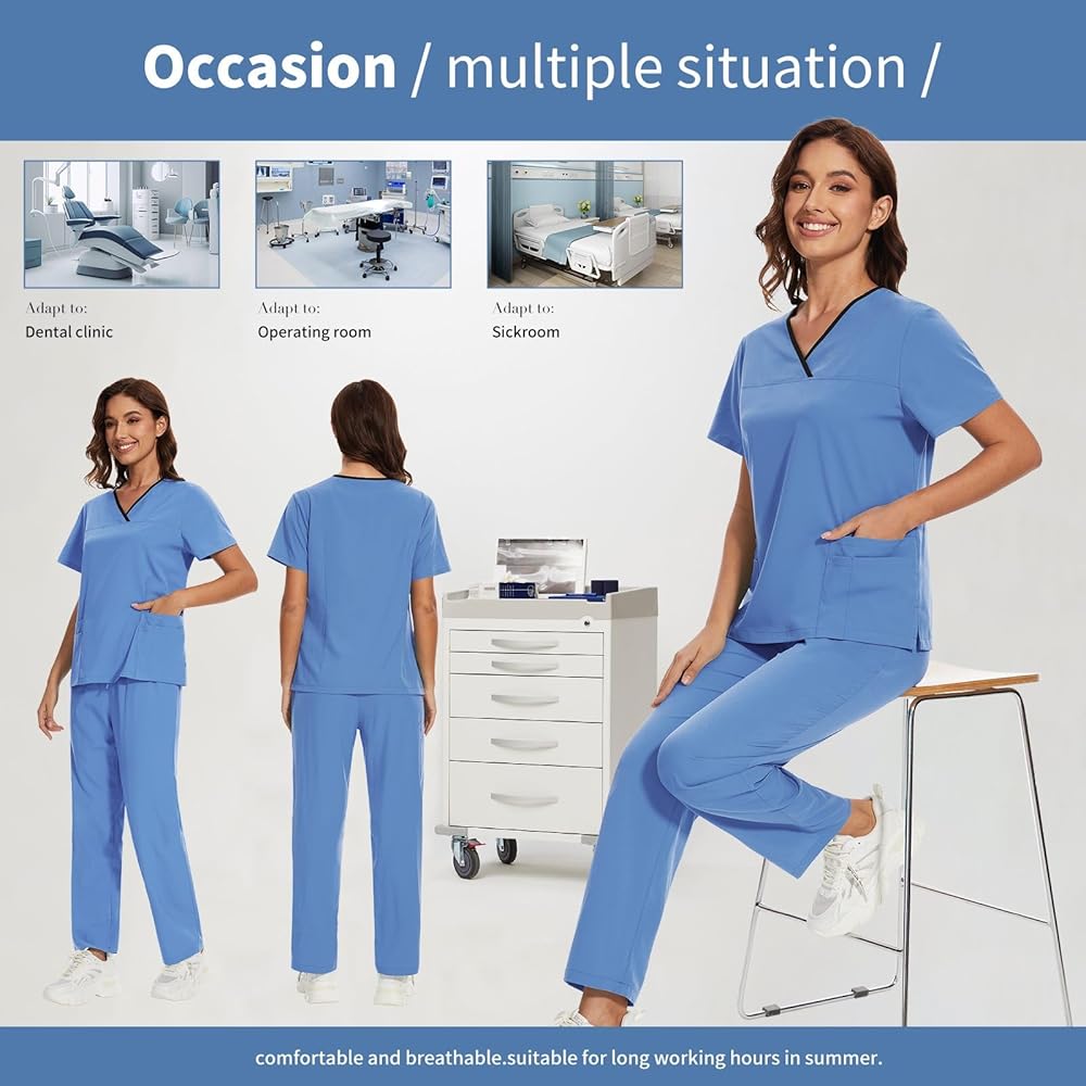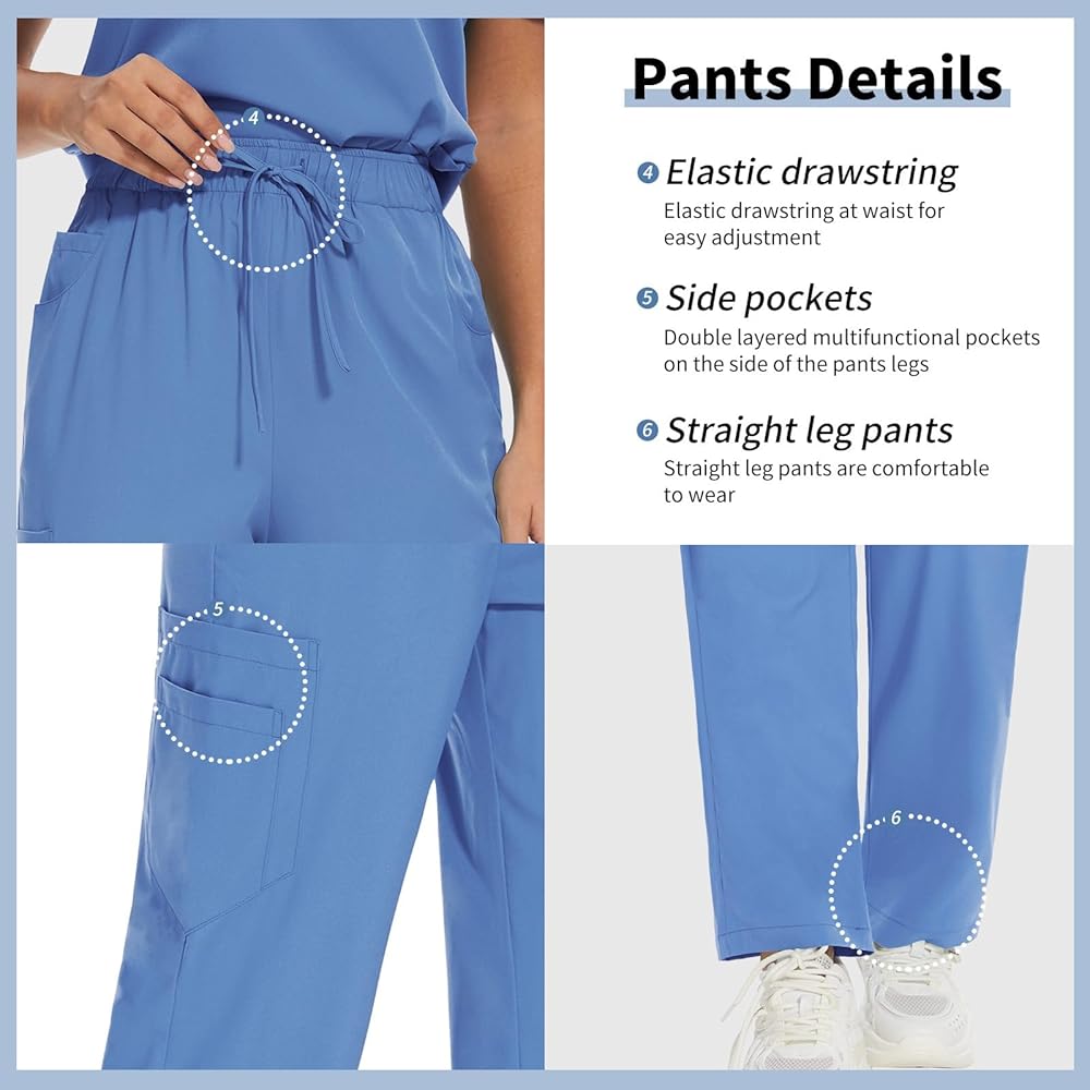 - MATERIAL: Made with high-quality materials, this scrub set guarantees durability and comfort during long shifts.