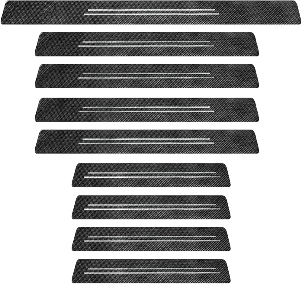 9 PCS Car Door Sill Protector, Carbon Fiber Leather Anti-Scratch Waterproof Threshold Protector, Exterior Decor Entry Guard Protection Cover Sticker for Car Truck SUV