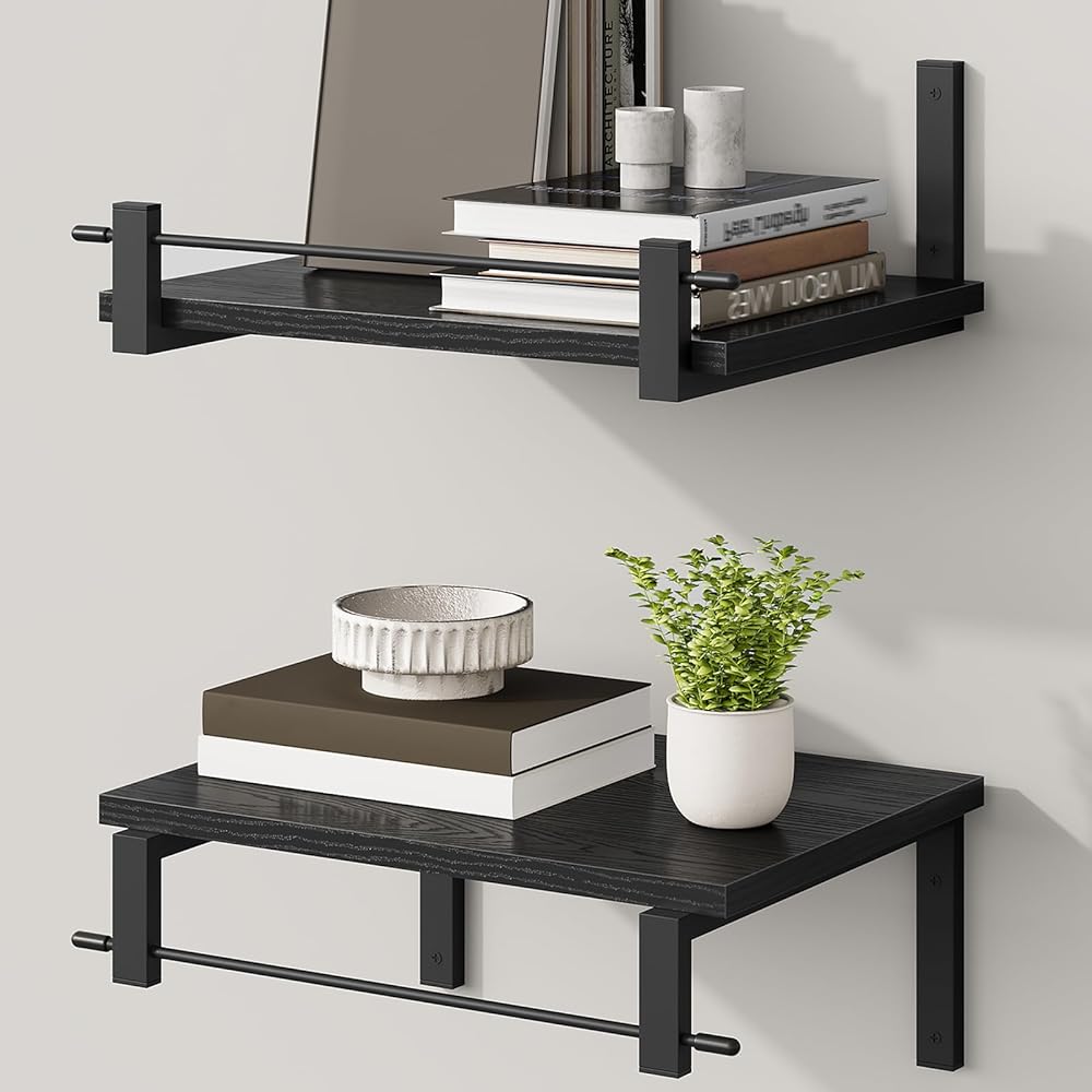 Sturdy and Enduring: The wall shelf set is made of thick, widened particleboard that can withstand wear and tear and are easy to clean. Paired with a robust metal frame and extended screws for secure wall mounting, each shelf holds up to 33 pounds