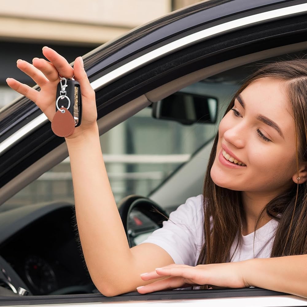 【Compact Versatility】Each leather fob measures 5.7x4.4cm (2.24x1.73in), paired with a 6x2.9cm (2.36x1.14in) metal keyring, ensuring compatibility with car keys, office keycards, or apartment fobs. The slim profile fits seamlessly into pockets, wallets, or bags without bulk