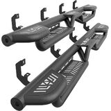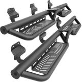 【Functional Design】:① The side steps feature a dual - layer layout, offering greater convenience for vehicles equipped with lift kits and oversized tires. It also facilitates easy access to the vehicle's roof.② The 6 - inch drop - down step pads provide excellent accessibility for pickup trucks with lift kits and oversized tires, while maintaining sufficient ground clearance.
