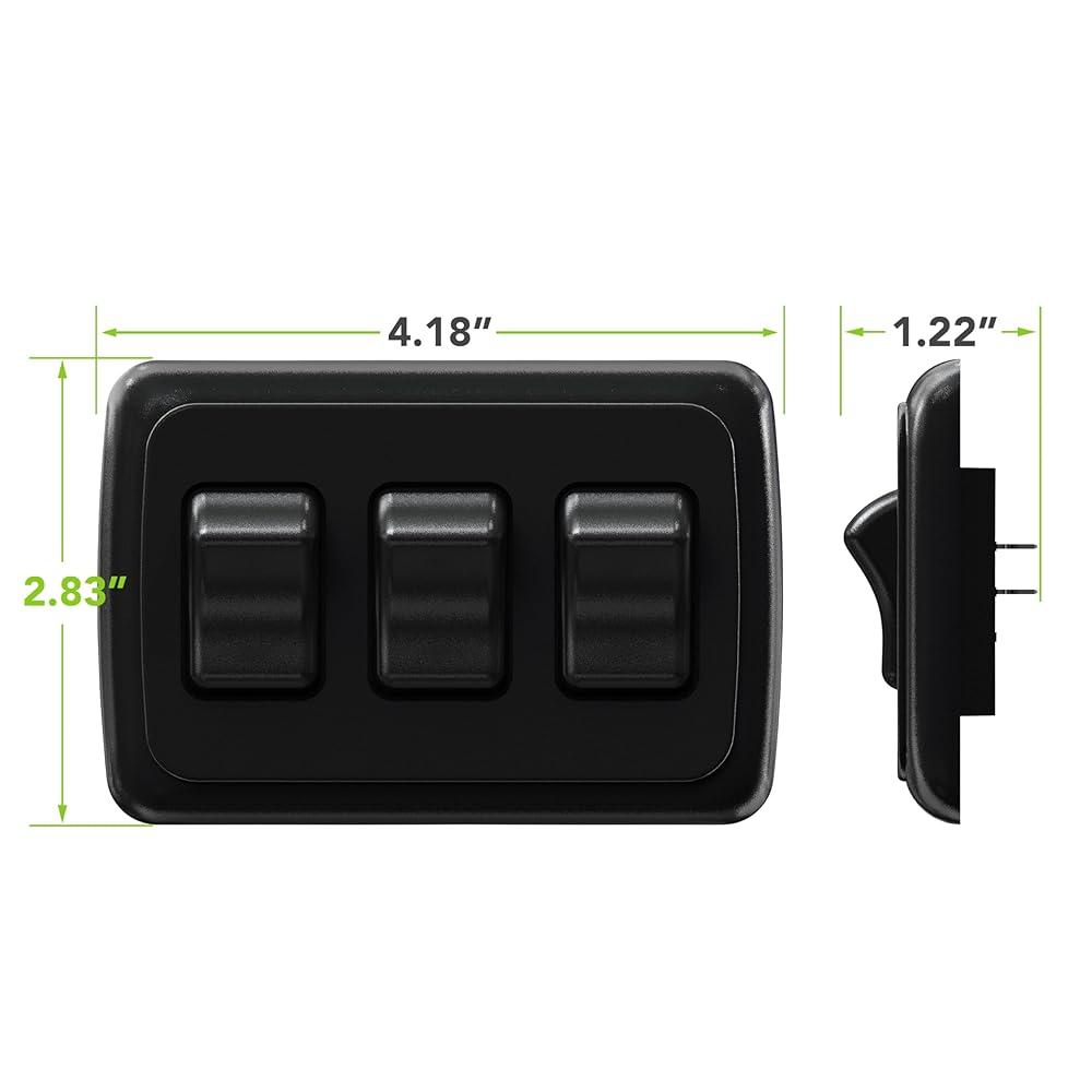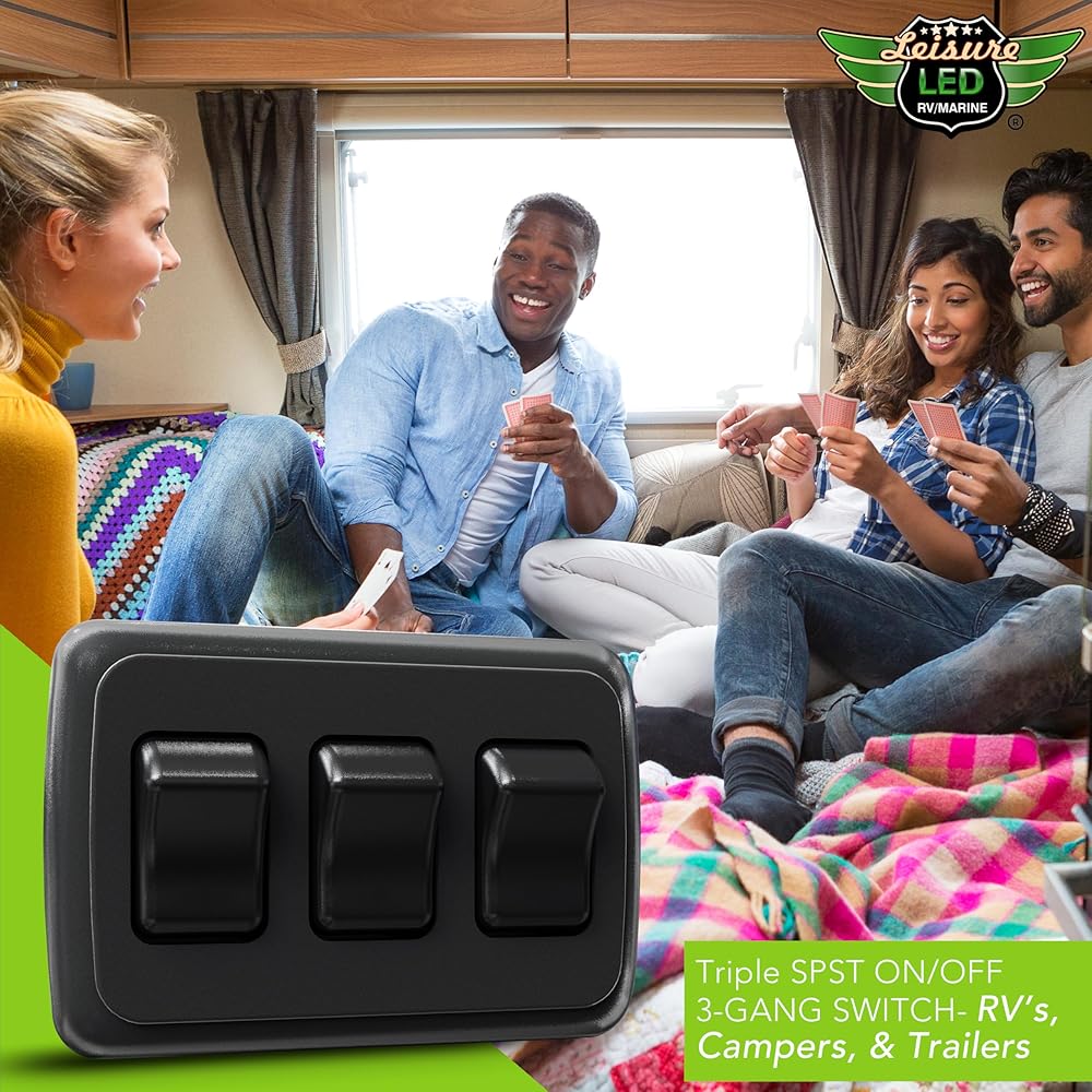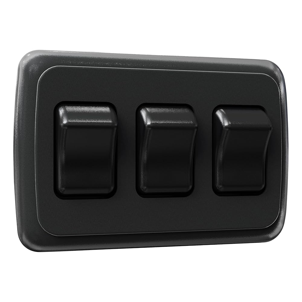 Leisure LED Contemporary Triple SPST On-Off Switch with Bezel, 12-Volt, for RV, Trailer, Camper (Black)