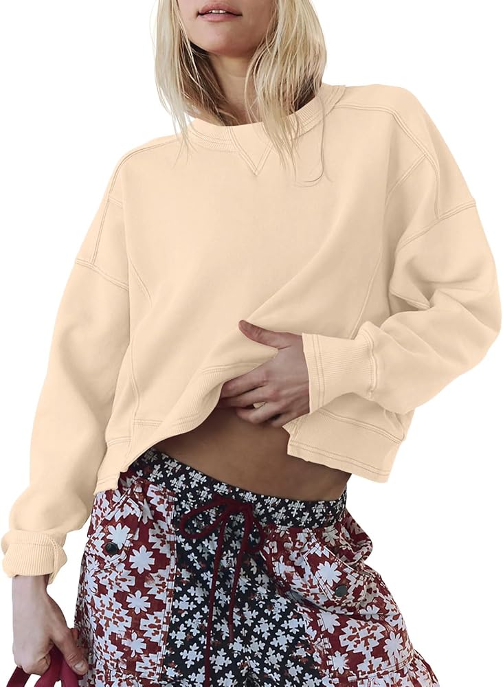 Feature: This is a womens sweatshirt, crew neck pullover sweatshirt, cropped pullover top, cropped sweatshirt, long sleeved cropped sweatshirt, long sleeved sweatshirt, fall clothes for women, cropped sweater, oversized sweatshirt, long sleeve workout tops, going out tops, spring tops for women, trendy clothes, winter blouses.