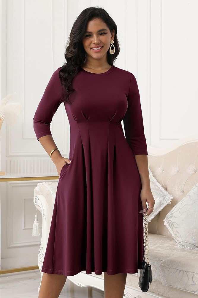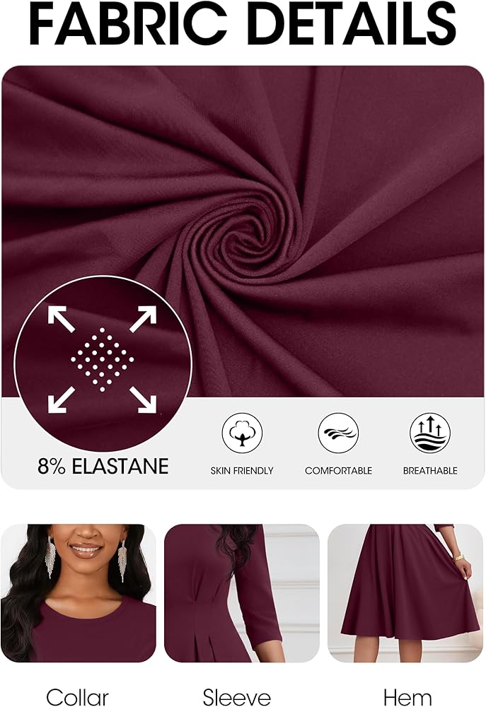 【Style】: Cocktail dress has a 3/4 sleeve design that hide your arms and accentuates elegance. The A-line hem of the church dresses for women spreads out naturally, which flatters the hips and legs, and is friendly to all body types.