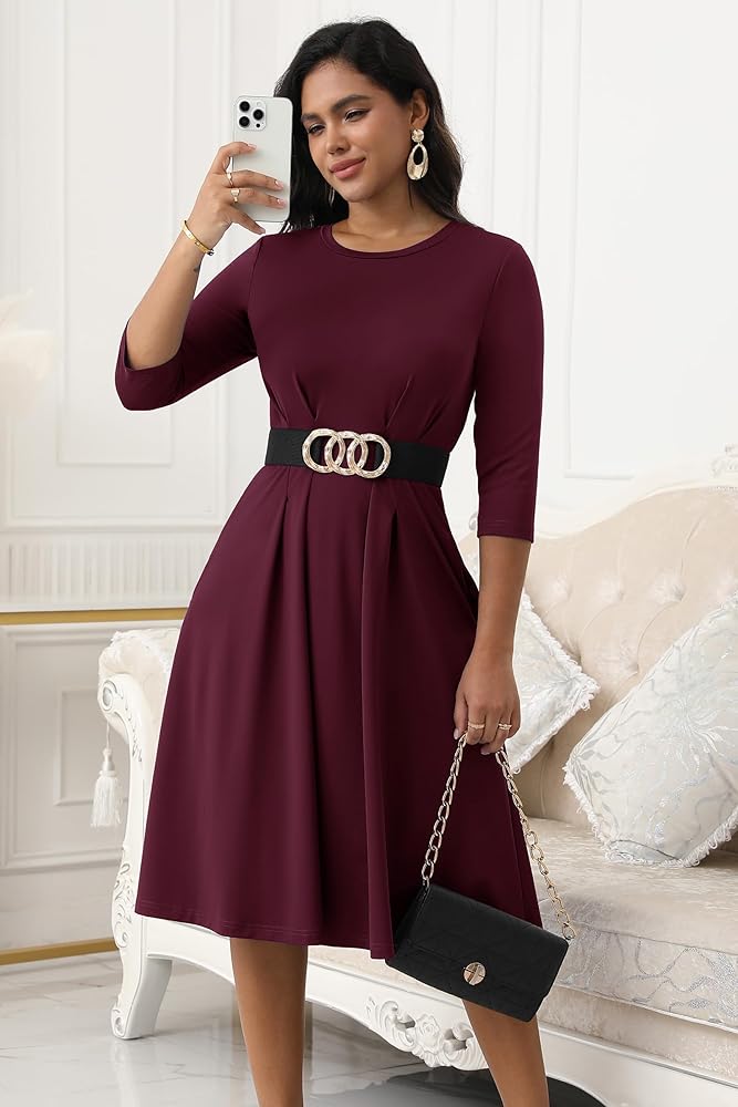 【Occasion】: This a line dresses for women is very suitable for going to church, wedding guests, going to work, cocktail parties, teachers, casual wear, this womens midi dress can meet the needs of different scenes.