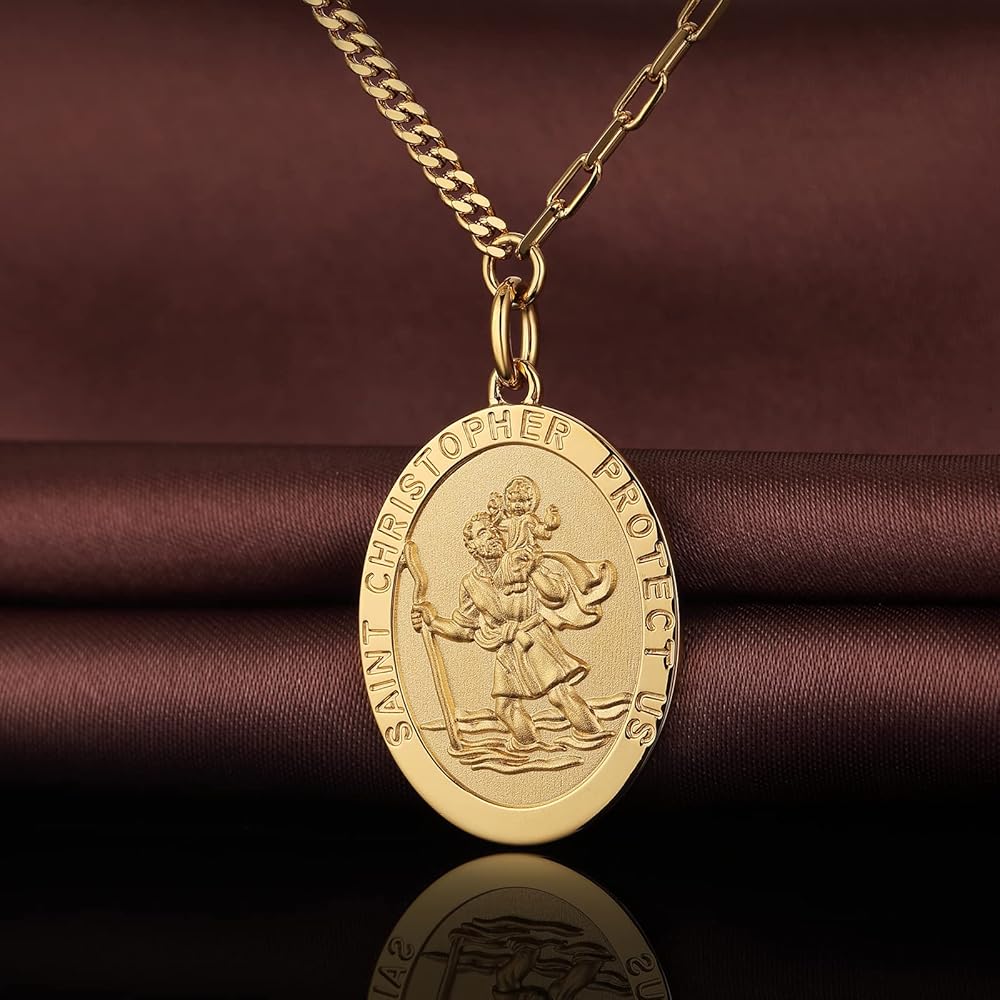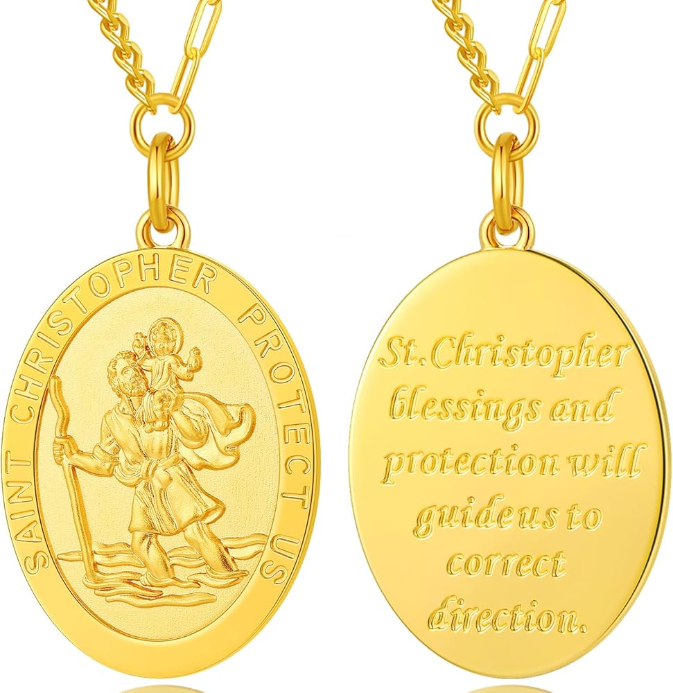 💎. 【Pendant Size】 Round Size: 30*30mm, Oval Size: 30*25mm; Colors: Silver, Gold, Rose Gold; Saint Christopher Necklace St Christopher Necklace for Men Women, It Can Protect Us. Lettering "Saint Christopher Protect Us" On the Front and Blessing On the Back.