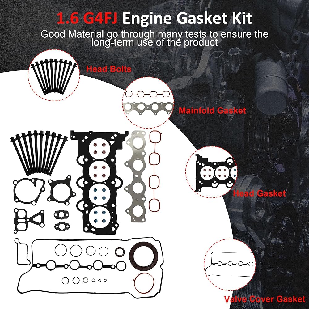 G4FD OEM Part Number: Cylinder Head Gasket:22311-2B004; Exhaust Manifold Gasket:28521-2B400; Valve Cover Gasket:22441-2B610.