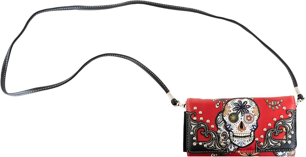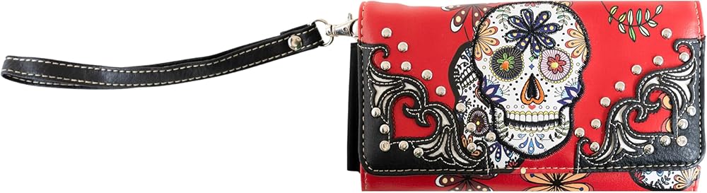 UNIQUE & TRENDY - This quirky western style wallet for women has sugar skull design in the center with bright colored crosses, flowers and smaller crosses all over it and beautiful cut out detailing. Perfect accessory just for you.
