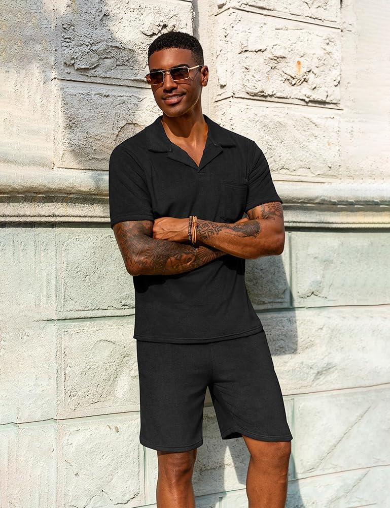 • UNIQUE DESIGN - Our mens summer sets 2 piece outfits feature short sleeve, cuban collar, solid color and tailored fit. The short is featured with pockets and an elastic drawstring, so it is convenient for you to adjust the waist size and store small items and maintain high performance in sports. This men's 2 piece short set outfit deserves a place in your summer wardrobe.
