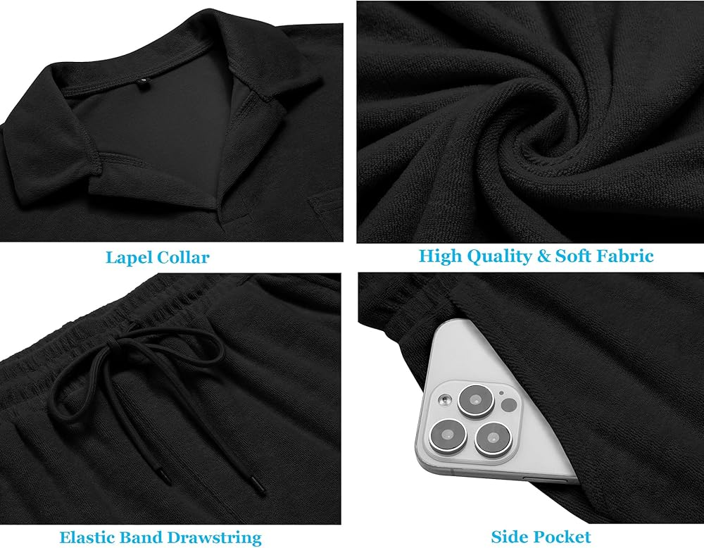• SUITABLE OCCASIONS - The terry towelling short sets for men effortlessly absorbs any poolside splashes. It is perfect for wearing poolside or wear as casual daily wear, sports, gym, vacation, beach, club, shopping, party, homewear, outdoor, or traveling in every season, etc. Whether you're strolling through the city or lounging with friends, our men's short sets are your ticket to relaxed sophistication.