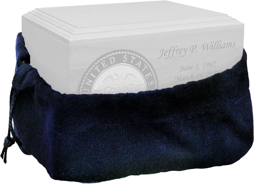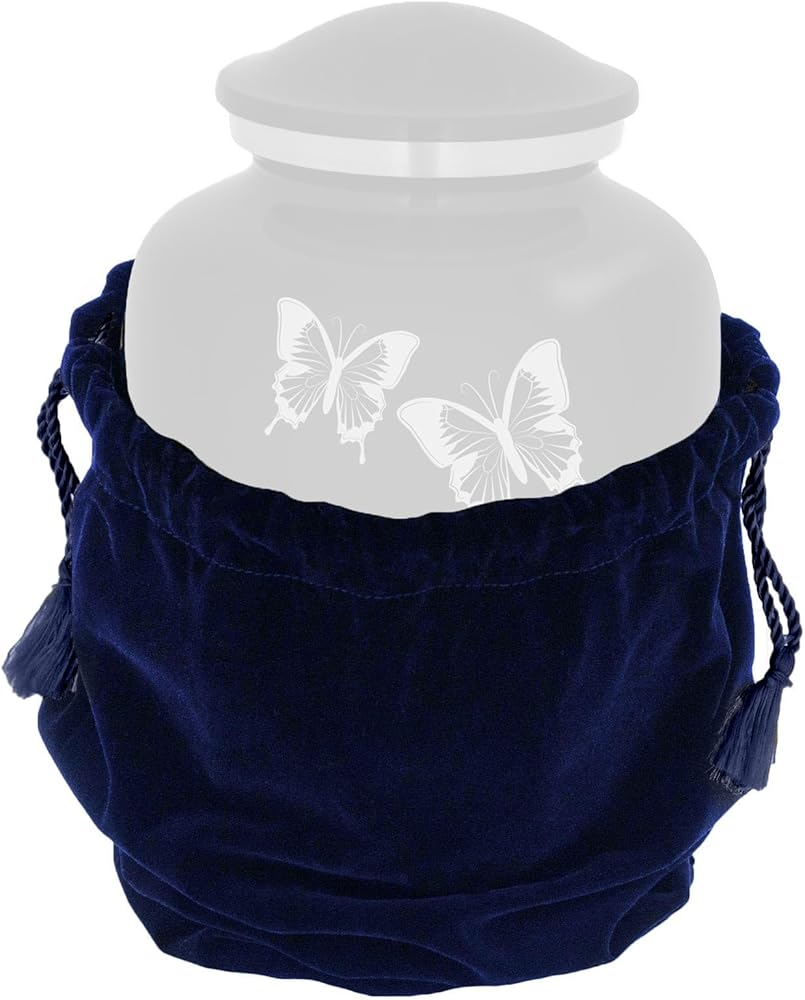 This large urn bag measures 9"L x 6"W x 16"H and provides an elegant transportation and safe-keeping solution for any urn measuring 7"H to 16"H. These velvet bagswill prevent scratching and will pad your urn from contact against rough surfeces. The luxurious appearance of these quality bags can serve as a calming reminder and loving homage to a loved one or beloved pet.