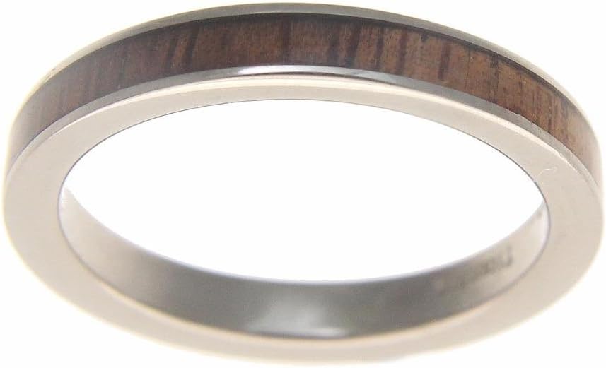 Genuine inlay Hawaiian koa wood wedding band ring titanium 3mm