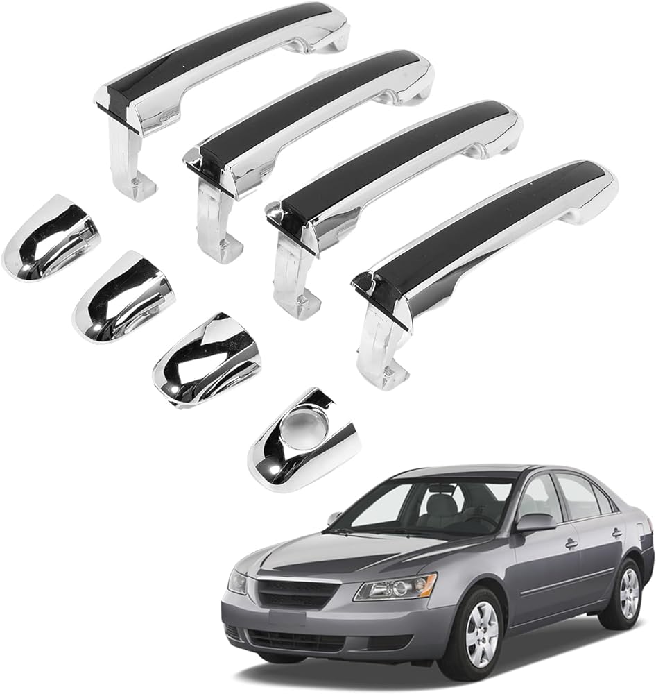 4 PCS Chrome Exterior Door Handle fits Sonata 2005 2006 2007 2008 2009 2010 Front & Rear Left Driver & Right Passenger Replaces 82651-3K000, 826513K000, with Black Insert