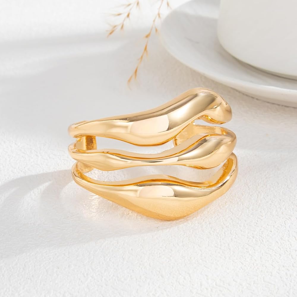 Statement-Making Chunky Twist: Bold yet refined. Features a thick 8mm twisted band with high-shine gold and silvery dual-tone plating. The 3D spiral design adds luxe texture without overwhelming your look.