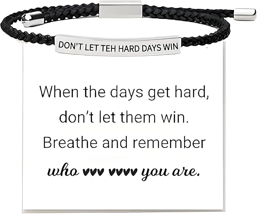 Dont Let the Hard Days Win Bracelet:You will receive an engraved bracelet, engraved with a delicate motivational message, a bracelet that inspires us to move forward.