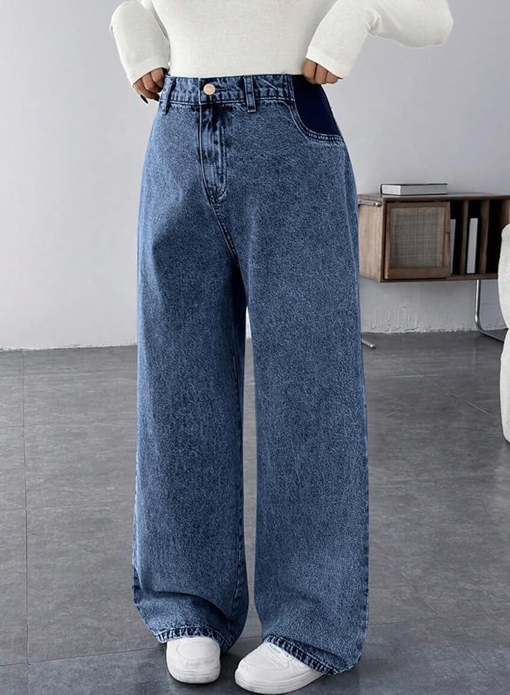 Adjustable Waistband: High-waisted elastic waist with button closure; expands flexibly to accommodate growing bellies during pregnancy for personalized comfort