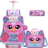 [Girls Rolling Backpack Details]High quality of Polyester fiber made,4 noiseless wheels design with high-strength aluminum alloy rod,not only ensure you can wheel it smoothly and anti-wear properly,it makes wheel it easily and naturally.(The rod and bag can't be removed).