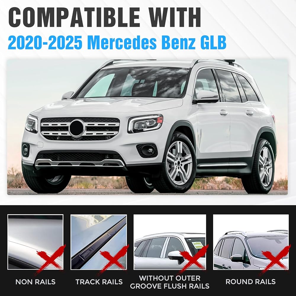 【Vehicle Fitment】: Our Roof Rack Cross Bars compatible for 2016 2017 2018 2019 2020 2021 2022 2023 2024 2025 Mercedes Benz GLC with Side Rails. Please check your vehicle's model and year before purchase.