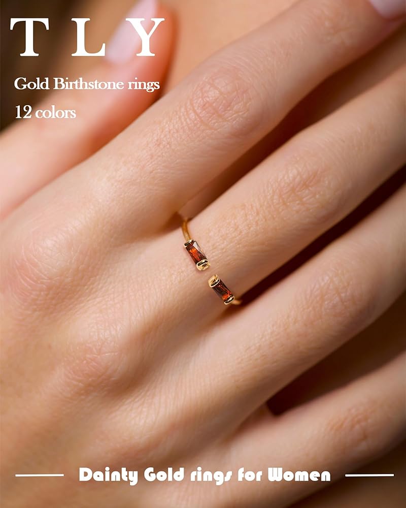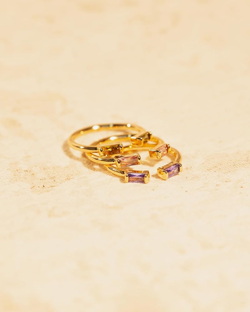 Birthstone Rings for Women - Everyone should own a piece of birthstone jewelry! Birthstones are available in 12 different colors to cover everyone's birth month, allowing you to select those representing your and your loved ones' birthdays, or any significant month to you. This dainty gold ring can be stacked with any other rings you prefer.